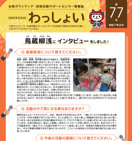 台東ボランティア・地域活動サポートセンターが年2回発行する広報誌です。下記テーマについての記事を掲載しています。