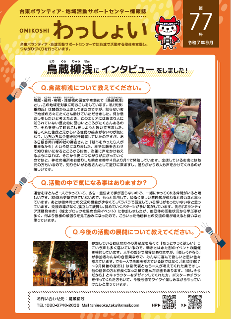 台東ボランティア・地域活動サポートセンターが毎月1日に発行する情報誌です。区内団体のボランティア募集情報が掲載されています。