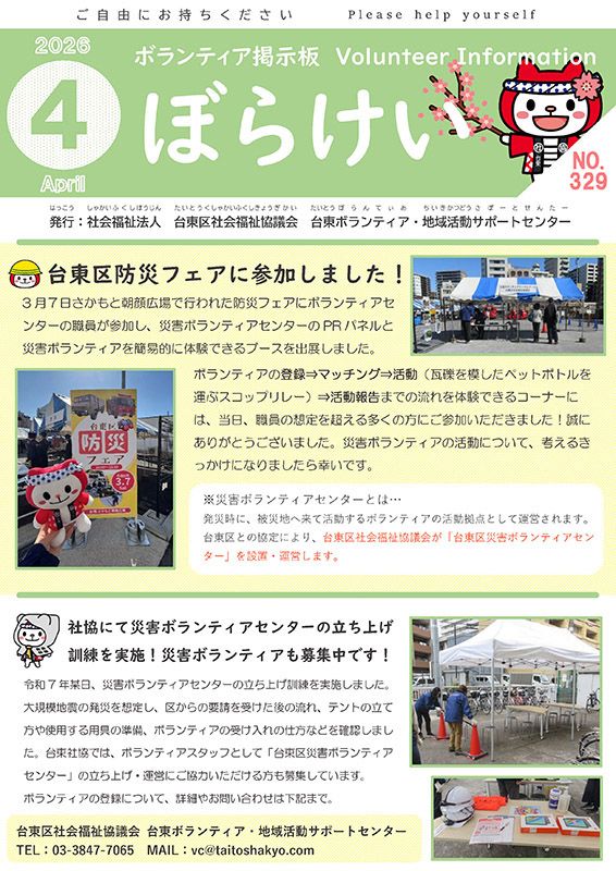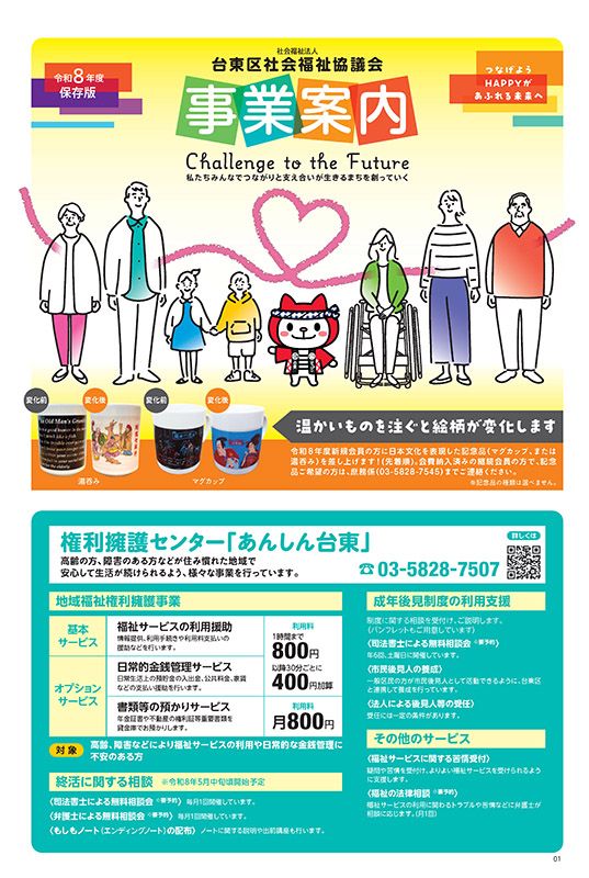 台東区社会福祉協議会は、地域のみなさまの参加と協力により、地域福祉の推進を行う民間団体として私たちみんなで つながりと支え合いが生きるまちを創っていくために、さまざまな事業を行っています。