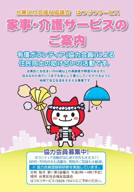台東区内にお住まいの65歳以上の高齢者や障害のある方で、日常生活に支障があってお困りの方